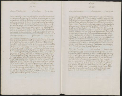 Ao. 1694. JULIUS: Aen neef Van der mart Amsterdam Den 4 Dito Desen sal enelijckdinen om UEd: nevens mevrou Van der Mart te versoecken ten eijnde wij haer nevens de verdere famille in de aen staende weeck op Goudesteijn souden mogen sien. Mijn huijsvrou vertreckt op aenst: maendag derwaerst en verhop (soo het Godt belief) op aenst vrijdag met den Postmeest en Hinlepente volijen sullen vol: Het sal ons aengenaem sijn in antwoordt deses) te verstaen, opwat dag wy het geluck sullen hebben van UEd: in het Maerseveense quartierte mogen verwelkoomen schepen hulft is overleden, en niets van meride ingekomen sijnde soo sal ick eijddigen, en blijvenEtc Goudesteijn Aen mijn soon Jounnes Desen 21 Dito Ick sende UEd. weder om te rug de mis sive van den hrspring waer op tot antwoordt dient, dat mijne bomen jegen woorde Staen op haer 6: jaer, en 7: sijnde 5: en 6: D.dick oock sommnige Swaerder: soo de heeren van Delf. daer enige speculatie in heb sij kunnen deselve laten sien, en haer keur uijt ijsooo wemen De heeren gecom: Rid: hebben, na 2 achtereen volgende jaren een goede quantiteyt aen de Forttijcatien van Naerden. Sichconhoven en VGeertruydtenberg geemploieert, en haer daer van bedangk gelijck den hr spering sal kunnen vernemen bij monsr Collijn wonende op het Ougehoy de voorgemelte heeren hebben mijn f60: voor het ioo betaelt. werdende int gemeende prys ge teguleert naa de murckt van het aenst saysoen, seer apparent synde, dat deselve net minder sal sijn, doorden de olmen schaers sijn en dit jaer seer qualya geslaegt te weten voor de jonge, die by de grondt afgesneden synde meest kragen, en wenig looten hebben gemaeckt Ick sende UEd: hier nevens een memori waer van haerd Gr achtb de heeren van Delft, in het maken van de straer weg haer souden kunnen bedinen1 Ao. 1691 Julius Aen mijn beminde Den 25 Dito Amsterdam Gelief te besorgen dat de schilder de sonnewijser verandert gelyck hem heb belast, maer deselve moet vlack tegens het speel huys aen staen waer van hy is afgewecken. Belastden Hovenier dat hy de wallen van de warande, en den ouden bogaert door Piter de mof laet af maijen, en de vuijlicht gekoomen uijt de middelvijver brevat op de vaelt in de Grun. maer de bladeren, en tackken van den Els moet h verbranden. De spaense vloot is achterom seer geluckkig bimen gekomen, en een schip, dat van de seleve was genon is wederom hernomen. Gisteren, al hier arriverende, soo vondt ick (godt lof, alles wel, en onsen soon te gast Gilief dog met het geselschap, eens te gaen op de Meer hofste, om de Brusselse bruyn voort af te pluckken, en de moliken te laten setten byj de Rode kars van Six soo salm oock laten afpluckken de witse Aelbessen, en men moet van de groote boonen aldaer enige laten staen om te drogen men moet sien naa de jonge duijvenn Aen mijn beminde Amsterdam Den 27 Dito Ick heb gisteren UEd. miss: s avons wel ontfangen, en sal aenstonts doen vernemen, of daer ocasie sal syn, om enig gelot te beleggen. Ick denck aenst: vrij of saterdag eens overte koomen met den fr Van Riet, en Jan Hinlopen Sal UEd. nader Aduiseren, en voor alles sorge vragen Dese morgen bekomen wij de gewenschte tydinge van het arrivement van S. Retour schepen. Belast loen Coetsien dat hy de schaeckels tock laet maecken, en laet de sijde netyjes eens setten daer syn touwen aen de latten by de voordeur die mendaer aen moet binden. De schaer van Steven is met Van Laersun versonden blijce Etc.