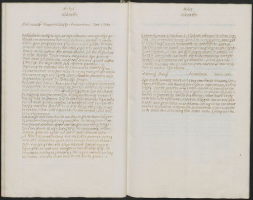 A. 1694 Novenber Aen monfr Timmermans, Amsterdam den 1 Dito De bewurte eentijes, sijn in mijn absentie, aen mijn huijs ge bracht, en versonden door mijn kinderen, soo dat ick van de selve, geen gesigt nog oock geenkennis heb gehadt deselve koomen van Suriname, van waer jegens de aenstaende Somer meer andere ben verwachtende ick ben blyde dat deselve Mevrou Timmermans aengenaem sijn geweest voor wien nu wederom enige rare insectes gereet werden gemaeckt, die mijn van de Caep sijn tte gesonden verlange te verstaen hoe de surinaemse tortelduyven al varen, dat seer goet slag is, en een raer geluydtmaken Alswanneer mijn 4 ac Eijeren van de bewuste hoenderen werd toegesonden, soo sal die laten uyt broeyen De doodt van Domine Francken heef mijn seer gesurpreneert en onsteldt; te meer dewijl hij voor sijn vertreck mijn quam besoecken op een tetye hem overhandigende secker tractaet de regering van Denemarcken beschryvende, met versoeck dat hy naa de lecture U H Ed hetselve overhandig en wilde sulcks moet gelesen worden, alsoo het in veel saecken re latifis tot dese Republicn u H Ed belieft het selve maen te Houden, alsoo (niet tegenstaende het verbot) hier wel is te bekoomen 11 Hetis mijn seer Leet UA Ed: sieckte, en griote swackheijdt te verstaen, diergelycke ongemackken, in dit suysoen met seer geviert werden of sijn van langen naa sleep, dierge lijcke siecktens, is mijn soon Josef, en Constantia onder worpen geweest, synde na weder aen de beterhandt: Ick ben een maendtlang seer verkoudt geweest, en nog niet wel harsteldt, waer mede ick mijn met seer bekom: mer, ten opsigt van het klene restant dat ick nog te leven heb, en niet veel vreugts, in dese bedurue R: G. en runeusen oorlog: te gemoet sie, die (mijns oordeels soo lang sal duren, als men maer resolueert om te geven Ao. 1694 November Susterloijnans is vrijckanck blijvende evenwel de stemvige reus: Den Hebreeusen doctor Rocco Moro: maeckt groote swaright te meer dewijl sulcke vehemente, en verdubbelde koorsen vallen op soo een swack, en (dooreen langdarige sickte uijtge teert lighaem Ick late hier by te voegen ietwes de famille, en de RE. betreffende sullende het selve reserveren ter tydt en wijle U H E: wederom sal sijn harsteldt. Ick sie kans, om staende dese verg: van 179 uets ten goede, voorden hr van Werk van te sullen eefectteren Aen nef Houft : Amsterdam Den 2: Dito uijt Uw Ed: missive van den 30 det voorledend maentt, vert staen hebbende, het droeuig overlyden, van vrouwe isabell Duijts, Uw Ed. waer de Huysvrou, soo heb ick van mijn pligt geacht, hier nevens myne condoleantie te voegen. En dewyle sulcks is geweest de wille des heeren, onder dewelcke wy ons, met alle submissie moeten buijgen, soo en sal het U w Ed: aen geen reden manqueren, om sig in soo een swaer verlies te kunnen modereren, en troosten Aquiescerende in de wille des alderhoogsten waer mede Eindigende Etc