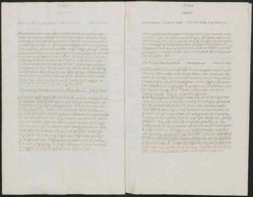 Ao. 1694 Ae Desen 2 Dito Aen den hr vaasrtben Amsterdan Alswamneerick de eere had van vwrelEd. tesien, soo heef mijn mons. Van Newen belooft, soo veelenten van de brustelse bruijn te besorgen als mijn nodig waren blyvende UEd ondertussen verobligeert voor de gedane presentatie, maer in gevalle UEd. van den hr van Heemstede enige lootyes van syne raerste karsen kost bekomen, en van syne raerste pruymen, soo scude Daer van enige boomen Latenenten. De vorg van 17 sal desen ochtendt voor de eerste mael sessie nemen, en in het ' mieden van de Aenst weeck (naa alle apparentie scheijden Als wanneer myn de by een komst Aen de N: sl. wel geleg sal koomen, Myn beminde is (Gode sij lof) nu tenemael onsteldt( die hier nevens Hare gebidenisse is doende En dewijl hier niets is meer weet bij te vegen soe sal ick met veel respect blyven Etc Aen monf. Timmermans Amsterdam. Desen 2 Dit Ick vinde mijn verylicht om Vhto Ed: nevens mevroutin mermans seer te bedancken voor het goedt onthael, en tractement, op suijderburggeneten. Als mede voor het Brabantseleleri saet, en dat van de witte violetten Ick heb het saedt van de spaense kroppen, al in gereetheyde En sal hetselve in het begin van de aenstaende weeck aen een van de Reyjsende bodens mede geven sijnde mijn (tot nochtoe, geen andere occatie voorgekomen om het selve over te senden, het gene al geschiedt soude sijn ingevalle ick niet enigedagen van huijs was geweest De borgtocht van Despontin, en is hier niet te vinden dat seer moeijlijckis in dewijl hier niets meer weetby te woegen, soo sal ick afbreckenen bliden Etc. Ao. 1694 MAART Amsterdam Desen 5 dito Aen den heer kegelaerik Alsoo ick het voorleden jaer in s Hage sijnde 3 a 4 soorten van een seer taije, en uijtheemse willigen heb gesien bij den hr Van Beaumondt: soo is mijn versoeck of UE. mijn van idersoort 2: 4 3: steckijes gelief toe te senden. Aengaende de Platands Orientalis daer van sal ick voorsien worden door den postm. Hinloopen En dewijl ick hier niets meer weet bij te voegen soo sal ick blijven Etc. Aen denhr van Benthem Desen 8 Dito Amsterdam Ick ben vwElEd seer veplicht voorde moejte diehy heef ge nomen, van myn met enige Enten van karsen te ver sien. En dewyl ick aenst donderdag (soo de verg van L overmorgen komt te scheijden) meen buijten te komen Soo wenste ick vrydaegs de entyeswel te hebben. alsoo Ick monsr De Rooij heb laeten versoecken om aenst vriy of saterd: buijten te willen koomen wat de pruymen belangt, daer ben ick nuredelyck van versien, men sal aenst maendag de soldaten aennemen sal de persoon die uwel Et: garen voor Corporael soudt emploieren aen mijne confraters recommanderen in gevalle ick syn naem wist. En aengaende de lantspass en jongen, die sullen door de ingeleyde brief kens geholp worden. Soo het haer Et mogende gevallig is, soo soude men de aenstaende weeck een comparitre aende N: sluys kunnen beleggen. Ick heb wederom met den Ad: van Vam gesprocken die meende dat men het werck wel daer heenen soude kunnendirigeren, om de bewuste Koopmun schap R Ringa of te ofteren ijngevalle het men maer wist te stellen, met de man met de blickken, en sijne verdere confraters waer mede afbreckende Etc