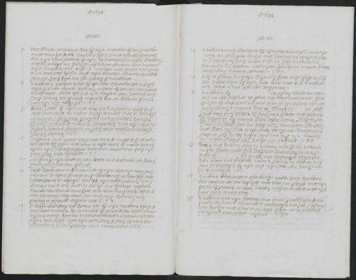 13: 10: 14: 12: 7: 8: 9: Ao 1694 Julius Van Alsem, en mons, Bos bij mijn, met hem bij den instru ment maecker Mets van daer op t S:Hmet Oudtburgemeest Aet mijn soon Joannes bij mijn, en vertrockken mijne 2 dochters met de schuyt na Goudest: bij suster Adriana van daer met myn beminde in de Suydk van daer met voorst tot sijnent eens vervarst synde met myn beminde altaer seckermddel van een kerck door den Afd: listing geinuenteert S ochten s: schepen Schot bij mijn door De Sweedt opt O: Agel mijn schout mons. Boodens, en vrou bij ons die eens schonck S achtermid: weder op t O: H in de vergader van daer nevens confr. Velters tot sijnent nevens den hr Hola een glaesk doon syjn slee thuysgel: 2:21 Monsr Lethh bij mijn, met hen een tr en samen naet Of van daer met de neven Devrij, en Schaep naa de Berebyt en in een 1 steijgers geseijldt na den omval daer wij bij neef Wildschat nevens Westerhof daer wij nevens mijne 2: soonen Joannes, en Josef aten met dito schuijs S avons weerom, SPT Sogtens met monsr Van der Mi ter V: M: en opt O H etende De Sweedt bij mijn, met hem in mijn caros bij mons. Derong synde sijn blomgewassen. Daer eens vervarsten gong mijn soon Josef naa Goudest 1. P Jan Grin bij mijn, s ochtens ince Wester en s Achtermid: n de Mordk quam Josephus van Goudest Capat. Dewvit, monsr Wicelaer Etc bij mijn, met mijn soon Jostf naa den D opt O: Hr met confr Van Coonaf en door Cap: van Outst Hoorn ti huijsgel: vertrock, mijn vrou, nevens Sr Adriana ten 2 uren met de barlyjn naa Goudest: sagfterm besocht van den hr van Roet met hem een glaesk opt O: H: in de ordinaris verg van daer met confr Domburg neef Hinloopen besocht regende seer 5: PT P: Deuds: HendHoog,: Van Rossen Etc bij mijn s ochtens op t O: 4 van daer nevens Nic De meester bij monsr. Mets siende aldaer nevens mons. Marcelis secker mat hematis in strament ten huijse van Reael met mijn soon Josef fr Josef Coijmans bes daer nevens Elias Coijmans eens vervarsten 3: Pt 18: 1: 17: 14: 15: 6: A. 1691 Julius S ochtens neef Hinlopen bij mijn met hem eenk en in sijn caros, na Hillegum Etende met Van der Stel op tijn plaets en Passenti by neef Louis Trip, en Dito Van der Stel provende de karden, sien de Jan Hinlopens nieuwe plaets arriveerden s avons wederom: 1P Neef V: Alsem: den prfes,: Ruijsch. J Grin, Cosijn Grip en Cap Van Outethoorn bij mijn, met hem naet O: fr. S achters mid: weder aldaer in de ord: vergadering S ochtens: by Lootgiter siende den toe stel om het platloot te giten van daer door mons. Grin geleijdt bij confr. Van Dam met hem in sijn vaders tuijn, en aen de Berebijt nevens den hr Tilens en in het Jacht van neef Velters, op Van Van s plaets, met Velters bij dewelcke wij nevens Reael mijne sonen Josef, en Jan Elias den Drost van den Berg: neef Van Kosen Etc. aten met Reael en ij Elias in sijn caros tot sijnent, daermevrou Hooft en jufr Colloij sagen van daer met mijn beminde en suvter Adriane inde Barlijn naa Houdest: 2:2:1 Besig met de elsen haeg te scheren, en de Gr. n: schoonte maken Etende s mid: den Professor Van der Wijen en sijn Broeder En nicht van Oosterwijck, vertrockken Dito heren naa Amsterd: s avons Joannes en vrou en neef van Oosterwijck bij mijn met mijn vrou in de Barlijn naa de Meerhofste. 281 S ochtens heen en weer in de barlijn naa de kerck s:jachterm bes: van den hr van Vuijlkoop met hem een glaesk met mijn geseld: bij Joannes, en vrou, nevens neef en nicht v Oostermijn daer eens veruarsten S: ochtens met mijn Coetsier, en n Cornel Jacobsz op de Meerh Gaende de Dames en nicht V: Oosterwijck naa Jan Coymans in de Barlijn met haer man wat gepro en en passant tot sijnent samen tot mijnent 1PT: