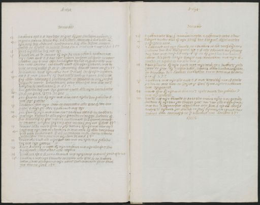 12: 56: 1: 15: 16: 27: 17: 18: 19: 20: 10: 21: 1: 22: 23: 24: 25: A. 1694 December S ochtens op t O: H van daer te gast bij Jan Hinlopen nevens myne 2: soonen, Westerhof, Vick Kevoort, Oosterwyck sch: Schot, en syn neef den advocaet Van der Mart Neef Aboo de penn: meesten 45: Hinlop en broeter en mons, Pama ten 1 vien met s anpsseer Was den geheelen dag niet uyt GLeenders, en Pr vincent bij mijn die eens schonck, sochtens met mijn caros aent O: H van daer nevens conftere Valckenier, en mons. Leseutre aen s: conp: wijn pack huysen deselve in specterende met dito caros weerom, tracteerde s mid: alle mijne kinderen, met de selue en neef Schaep fr en sr Westerhof besocht samen een gl 321 De commiss. vant Uijtrechtse veer: Pr Claesz: Etc bij mijn, s ochtens Op t O: H: met Leseutre af. Tracterende s mid: en s avons schep Schot Neef Aboor Oosterwijck, Van der Mart, en vrouwen, en neef Jan frrs komende mons. scharpen seel onss besoecken met hem een P scheyden de vrindenten f12.52: Den gchelendag miet uyjt geweest s mid: Alle mijne kints kinder tot 12 int getal by ons te gast Jan Grin en Lesr bij mijn met hem eent sijnde den geheelen D niet uyt geweest S ochtens met mijn vrou, en Constantia in de Westck, door van Keppel thuijs gel was s achtermid: met uijt Jan Grimbij mijn met hem, een T s ochtens Opto H en s ochtens met mijn beminde alle myne getroude, en ongetr: kinderen bij Dom: Westerhof te gast nevens Van der Mart: Vickkevoort Oosterw: en vrouwen scheijden wij ten 9 uren vertrock Josef naa Gondest 4PT Domine Calde monsr Grim, en jufr Boddens bij mijn met haer een P S mid: met mijn vrou, en 2 dochtors in onse caros by Hboo, daer nevens schep Schot: Van der Mart, Reael en vrouwen mede waren nevens Jan Hirlopen ten 12 vren met mijn caros Etc naa H: 4 P: Tracteerde s mid: alle mijne kinceren met vis sijnde den geheelen dag niet uyt geweest Mons. Mensing, en soon bij mijn s ochtens met mijn sleeopt O: Hen S achtermid: weder aldaer in de vergader S ochtens opt O: H en s achtermid: met uyt gewest met neef Jast opde Ven S ochtens met mijn beminde en Sophia in de Westk en s avons weder aldaer als wanneer mijn monsr Van der Wisselt quam besoek met hem een glaesk 181 26: 17: 1: 28: 29: 31: 31: A. 1691. December S ochtens in de Westk: communicerende s achtermid: weder aldaer Rutgert Van der haer bij mijn stierf den burgemr Appelmandes nags ten 12: uren S achtermid: met mijn beminde en 2 Dochters in het sterfhuijs onse kinderen den Rou beklagende, op t O: H in de ordinaris vergaderina van daer met confr Barnars B af en bij Jan Elias daer nevens hrist. Blockkeri, en sijn swager eens vervarsten, met mijn be minde, en Sophia in een slee naa H V van pleuren bij mijn s mid: met mijn vrou, en 2: Dochters in de caros, te gast by schepen Schot: nevens Aboor Van der Kruyssen en vrouwen de 2: broeders Van Baerlen, ten 11 vren met de caros naa H 3PT S ochtens met mijn slee naet O: H met Westerhof naa Hetende J. Elias en vrou sara, en weijntije beael bij ons sijnde s achtermide niet uijtgeweest monsr Grin bij mijn met hen een p. sijn de voorts den geheelen D niet uytgeweest S midd: met mijn beminde in onse slee nevens mijne 3: ongekroude Kinderen bij mijn soon Jan Elias te gast van daer alle te beprafenis met den Burgemeester appelman in de Niwek uijt het sterfh nevens El Coijmans, Jan Hinlop, en Josef Coijmans tot sijnent, daer nevens Aboo: Oosterwijck en fr. Vierevoort eens Roakten 4 Pt Finis