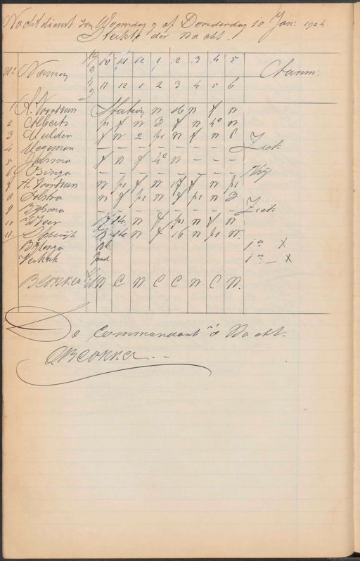 Municipal archive Zaanstad, archive number OA-0123, Gemeentelijk politiekorps Zaandam, later Zaanstad, inventory number 158, Nachtrapporten betreffende meldingen en dienstroosters, 1923 aug. 19-1924 apr. 8
