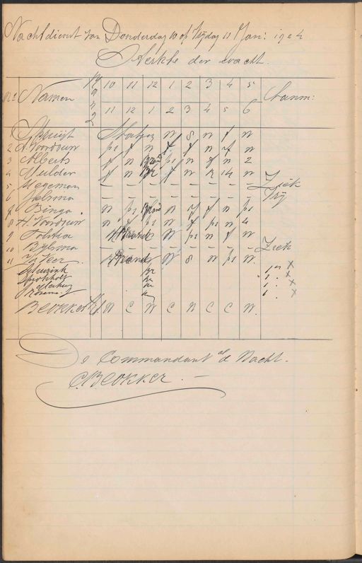 Municipal archive Zaanstad, archive number OA-0123, Gemeentelijk politiekorps Zaandam, later Zaanstad, inventory number 158, Nachtrapporten betreffende meldingen en dienstroosters, 1923 aug. 19-1924 apr. 8