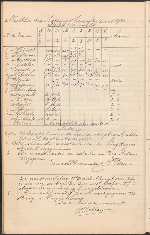 Municipal archive Zaanstad, archive number OA-0123, Gemeentelijk politiekorps Zaandam, later Zaanstad, inventory number 168, Nachtrapporten betreffende meldingen en dienstroosters, 1930 feb. 20-1931 mei 27