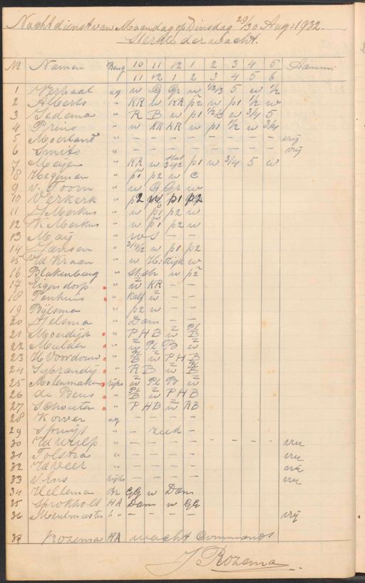 Gemeentearchief Zaanstad, archieftoegang OA-0123, Gemeentelijk politiekorps Zaandam, later Zaanstad, inventarisnummer 170, Nachtrapporten betreffende meldingen en dienstroosters, 1932 aug. 29-1933 nov. 28