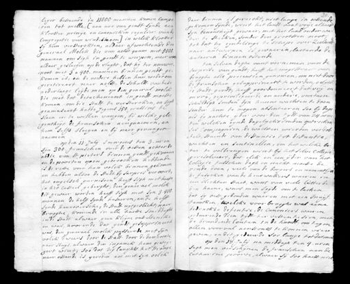 leger bestaende in 11000 mannen komen campe¬ ren tot melle, (een ure van gendt sijnde een klooster priorije en canonicken regulier vande Congregatie van windeshem) in welck klooster sij hun versterckten, aldaer afwachtende den generael Molck die van aelst quam met 5000. mannen om sigh in gendt te werpen, maer wiert aldaer geslaegen op de vlught, dat hij ter nauwer¬ noot met 3 a 400 mannen binnen gendt ge¬ komen is, en de andere hebben hun wederom geretireert naer aelst, de schuldt van dese nederlaege leijde men op den general molck die met dat detachement in gendt moeste komen om die stadt te verstercken, en sigh geamuseert hadde Jegens 150. grassins te slaen en te willen vangen, bij welcke gele¬ gentheijt de franschen aenquaemen, en hem selfs sloegen en bij naer gevangen naemen op den 11. Julij s morgens ten 3. uren sijn 300. franschen over de vesten achter de abdie van st pieters binnen gendt gekomen en de poorten open gebroocken hebbende is de reste van hun volck binnen gekomen en hebben alsoo de stadt by surpris verovert, het engelsch garnisoen heeft sigh met haeste in het casteel geberght, den generael molck dit gewaer worden heeft sigh met syn 3. 400. mannen de helft sijnde husaeren, en de helft sijnde hannoversche, de stadt uijtgevlucht, naer brugghe komende in alle haeste smiddaghs in de stadt alwaer geen kleijne onsteltenisse en was, hoorende dat gendt gesupprineert was, den generael molck passeerde met sijn volck dweers door de stadt door de dampoorte naer sluijs, alwaer den inganck hem geweij¬ gert wiert, soo dat hij langhts het strange naer ostende is gereden en met syn volck 20. daer binnen is geraeckt, niet lange in oostende gekomen sijnde, wiert het landt vant vrije alhaest syn benautheijt gewaer, met het land onder wa¬ ter te steeken, sonder den grootsten noot, tot dat hy eyndelinge te schepe over Zeelandt naer antwerpen is gevaeren, laetende de husaeren binnen ostende ten selven daghe vant vernemen vande surprise van gendt, heeft het magistraet van brugghe alle precautien genomen, om niet door de franschen gesupprineert te worden, gelijck de stadt gendt, heeft geordonneert dat vrij en onvrij, gepriviligeerde en andere, voortaen schuldigh souden syn hunne wachten te doen sonder hun te mogen absenteeren soo bij dage als by nachte ijder voor den tydt van 24. uren ten welcken eijnde dagelijckx souden optrecken ses Compagnien, de wachten wierden verdob¬ delt, staende van distantie tot distantie, wachten en sentinellen, om het welcke be¬ ter te volbrengen wiert bij het selve collegie geresolveert, dat elck en een ijder van het collegie tusschen dagh en nacht moeste de ronde doen, veele van de borgers en namentlijck de fusycken vande heurwakers waeren in een slechten staet, want van veele lutterde den haene, want men seijde om te lachen dat sy vast gebonden waeren met een snuijf¬ tauwken, welcke voor brugghe was eene bedruckte defentie, de canoniers waeren gedeurende dien tijdt ter vesten te sien, met de brandende lonten in de handt, om tegen allen voorval aenstonts te konnen vier geven, en dit gedeurde soo lange tot dat men op den 18. julij na middagh ten 4. uren sagh men verschijnen de franschen aen de Catharine poorte, alwaer sij soo haest niet