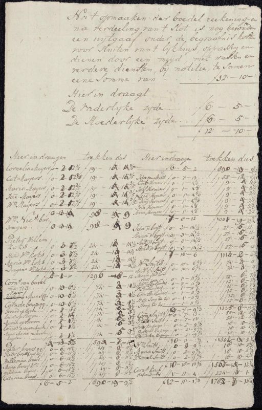 Maria Lips, getrouwt geweest met Lucas van Miest de 2 en 22: 5: — 5. 18 ƒ112: — 2: 10½ haare kinderen Ida