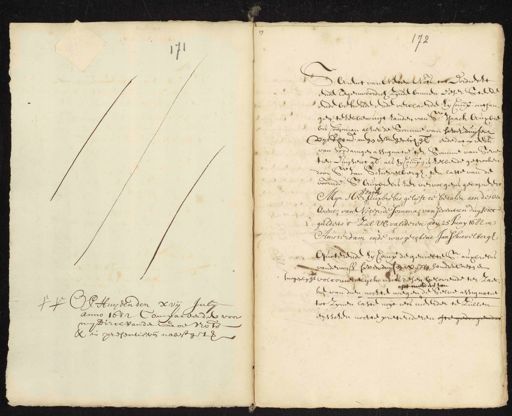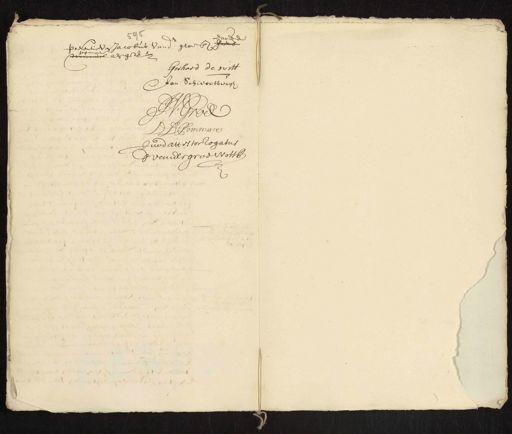 596 Davidde presentie van Jacobus Van dr. groe ende En Munnick als get. e Geshaed de witt Jan Schievelbergh