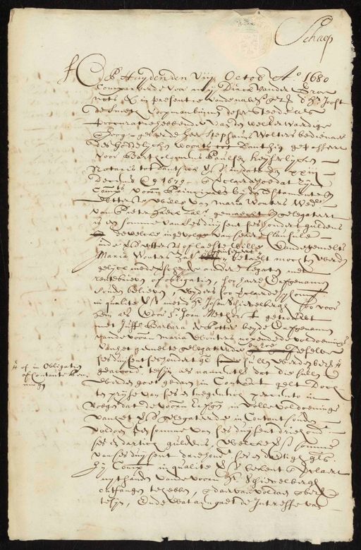 seventien duijsent guldens t' Zal Ve valederen adij 15 Junij 1682 in Amsterdam ende was geeekent Jan Schievelbergh