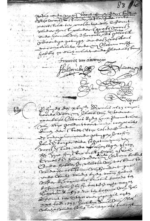 hebben op dach maent ende jaere alsboven francoise van amerongen ƒ A:Borculva wij ende Vander hirss Jan