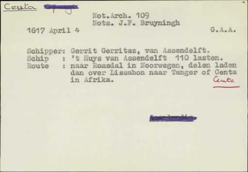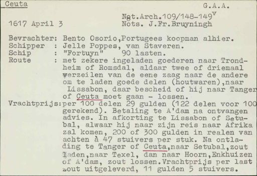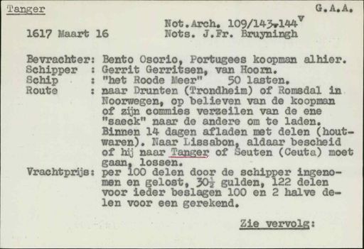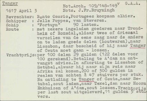 Schip met zekere ingeladen goederen naar TrondRoute heim of Romsdal,aldaar twee of driemaal verzeilen